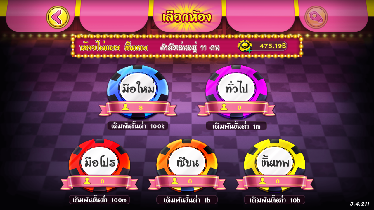 1.เข้าเกม กด ไพ่แคงขั้นเทพ หรือกดสัญลักษณ์ [:::] เพื่อเลือกประเภทห้องการเดิมพัน